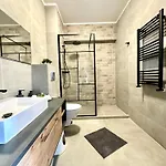 Miluna Luxury Studios & Apartments includes a walk-in shower for your comfort. Moreover, there are slippers as well.