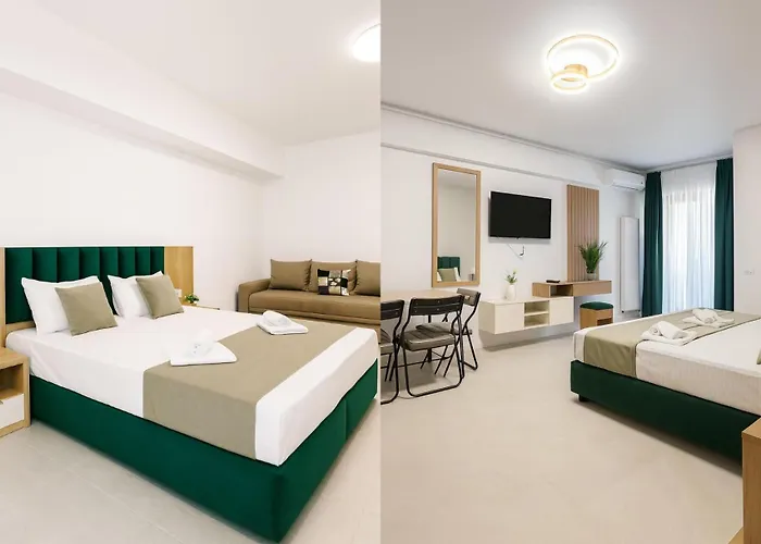 The 7-room Miluna Luxury Studios & Apartments offers views of the city and a location 5 minutes' drive from Plaja "La Hamace". Access to an aqua park and a satellite flat-screen, as well as opportunities for diving, are available to guests.